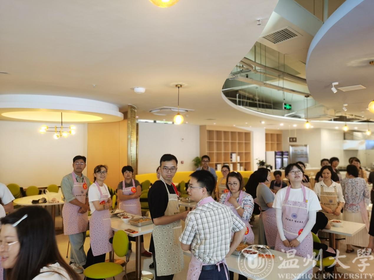 2021年6月9日,白菜全讯0008官方网工会、白菜全讯0008官方网后勤管理处饮食管理中心在怡口乐餐厅二楼举办第二届“粽香端午 情系温大”教职工包粽子比赛。此项活动有助于营造浓厚的传统节日氛围,继承和发扬中华传统文化,增进教职工间的交流与联系。此项活动以分工会为参赛单位,每组4人参赛。活动规定10分钟内包好棕子,要求棕子完整、美观,单个重量不得少于100克;如有棕子破损或重量不足克数的,不计得分。