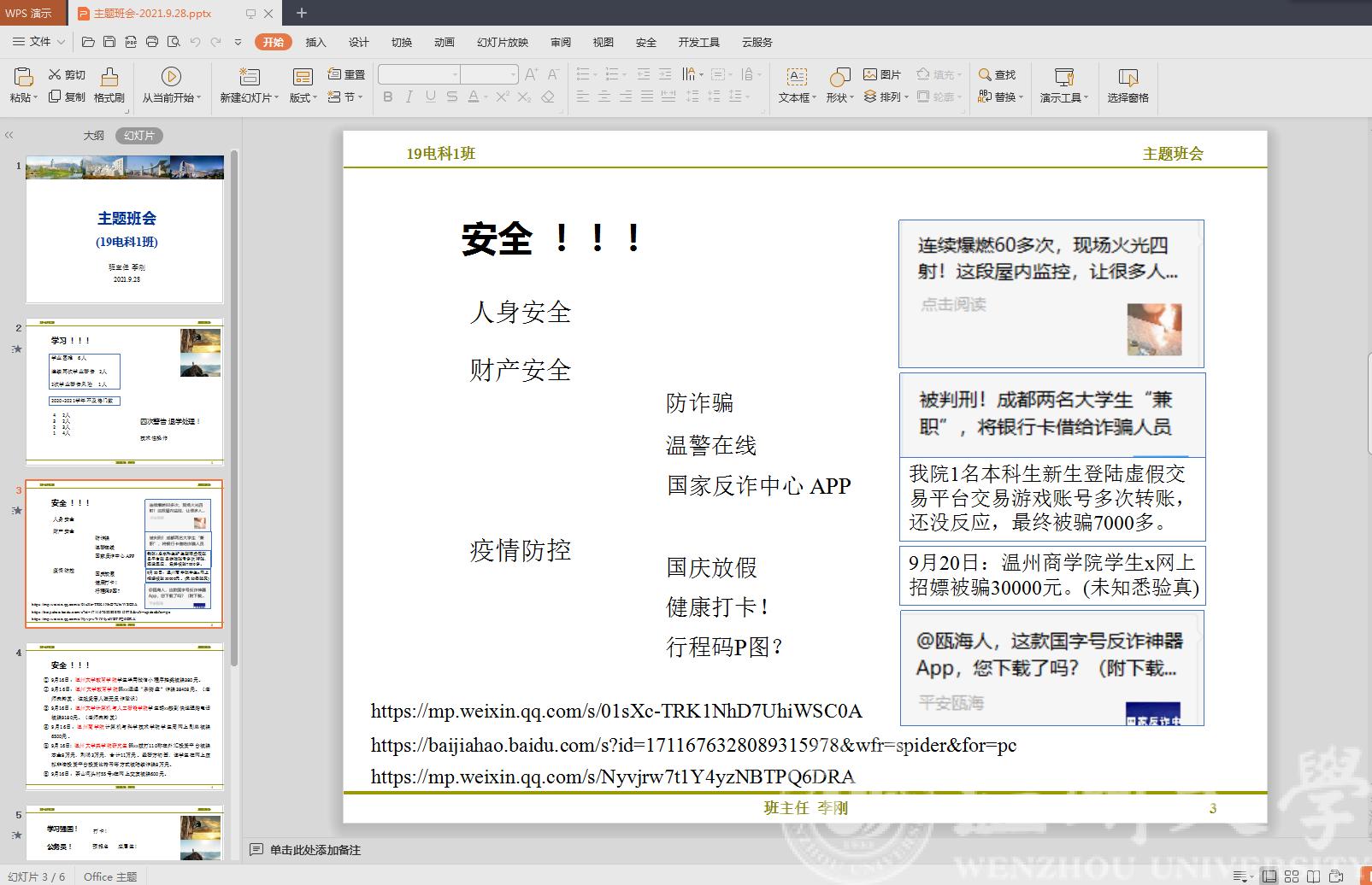 为了预防电信网络诈骗,进一步提高同学们的警惕性,电气与电子工程学院各班级纷纷响应学院号召,于近期内围绕“反诈防骗”召开主题班会。