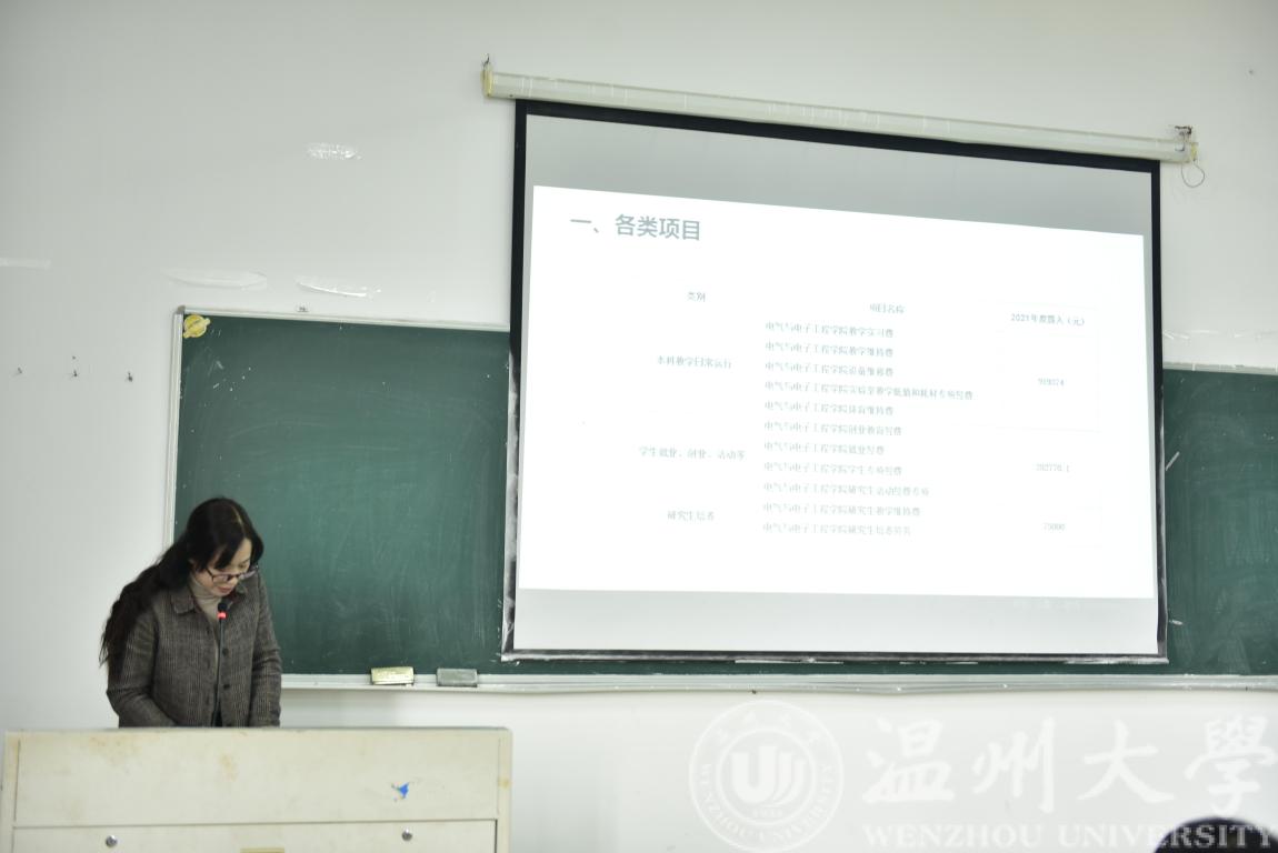 接着由办公室主任薛漫芝、工会主席潘海鸥分别进行财务工作报告和工会工作报告,详细展示了学院全年财务收支情况和学院工会活动开展情况等。