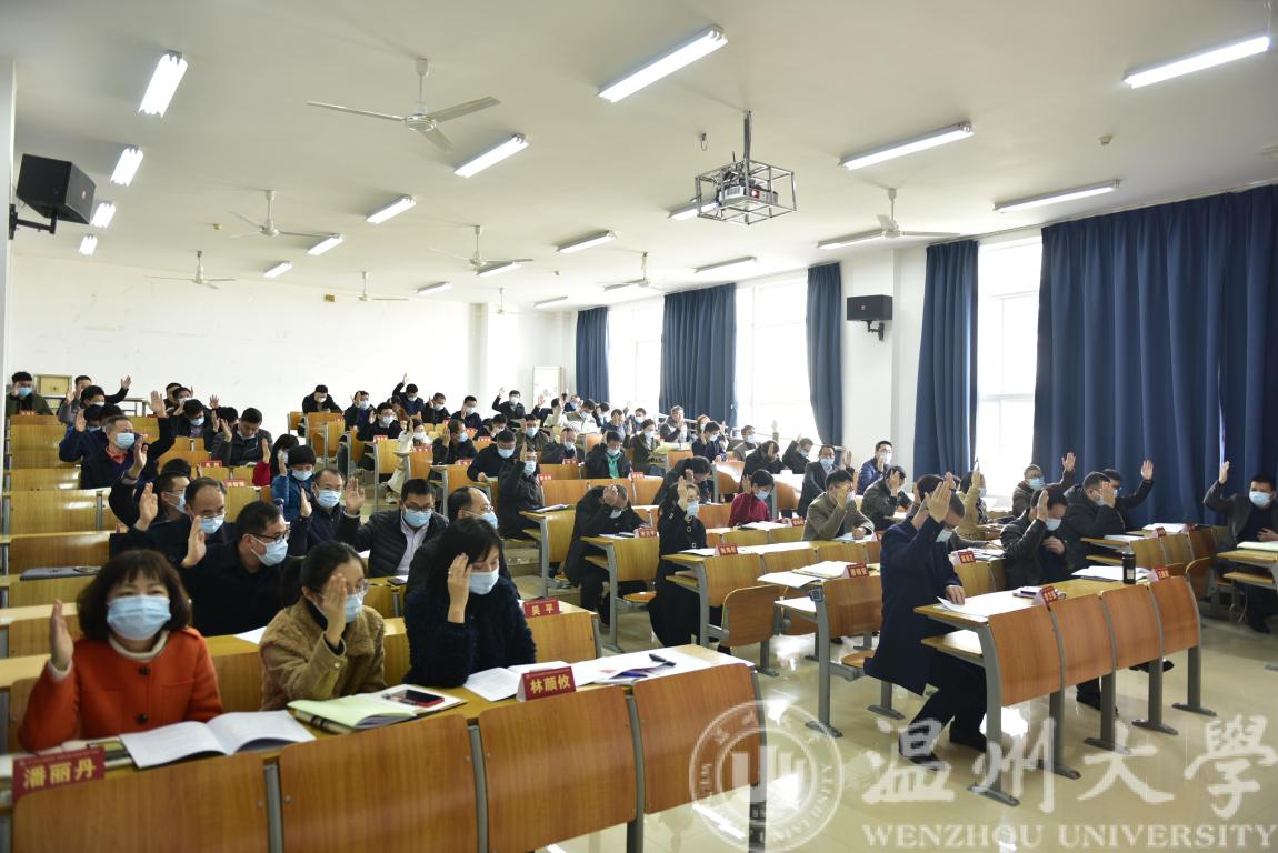 随后全体教师对上述《学院工作报告》《财务工作报告》《工会工作报告》进行审议表决,表决结果全票通过。接着李方强书记做总结讲话,并对学院一年来的工作情况给予鼓励,对以后的发展提出了希望。