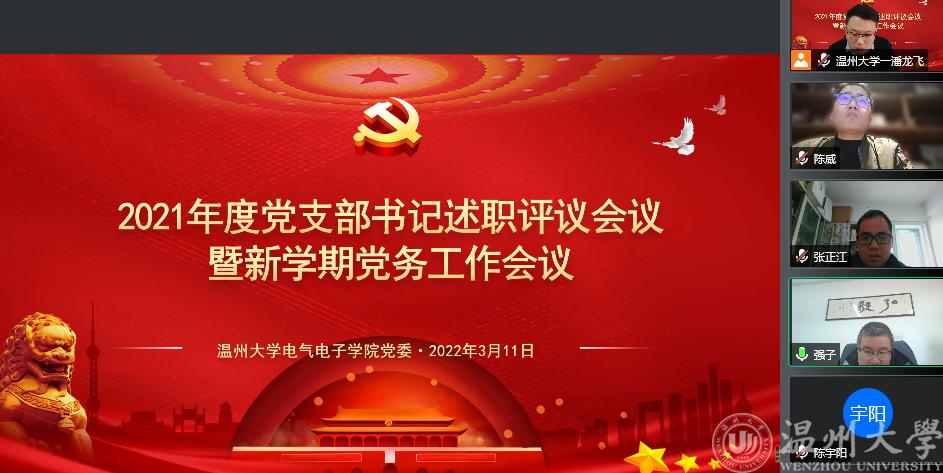 为深入贯彻新时代党的建设总要求,充分发挥党支部战斗堡垒作用,落实党建主体责任,2022年3月11日下午,白菜全讯0008官方网组织召开2021年度党支部书记述职评议会议暨新学期党务工作会议,学院党委书记李方强,学院党委委员、各支部书记、工会代表和各科室负责人参加了此次会议。
